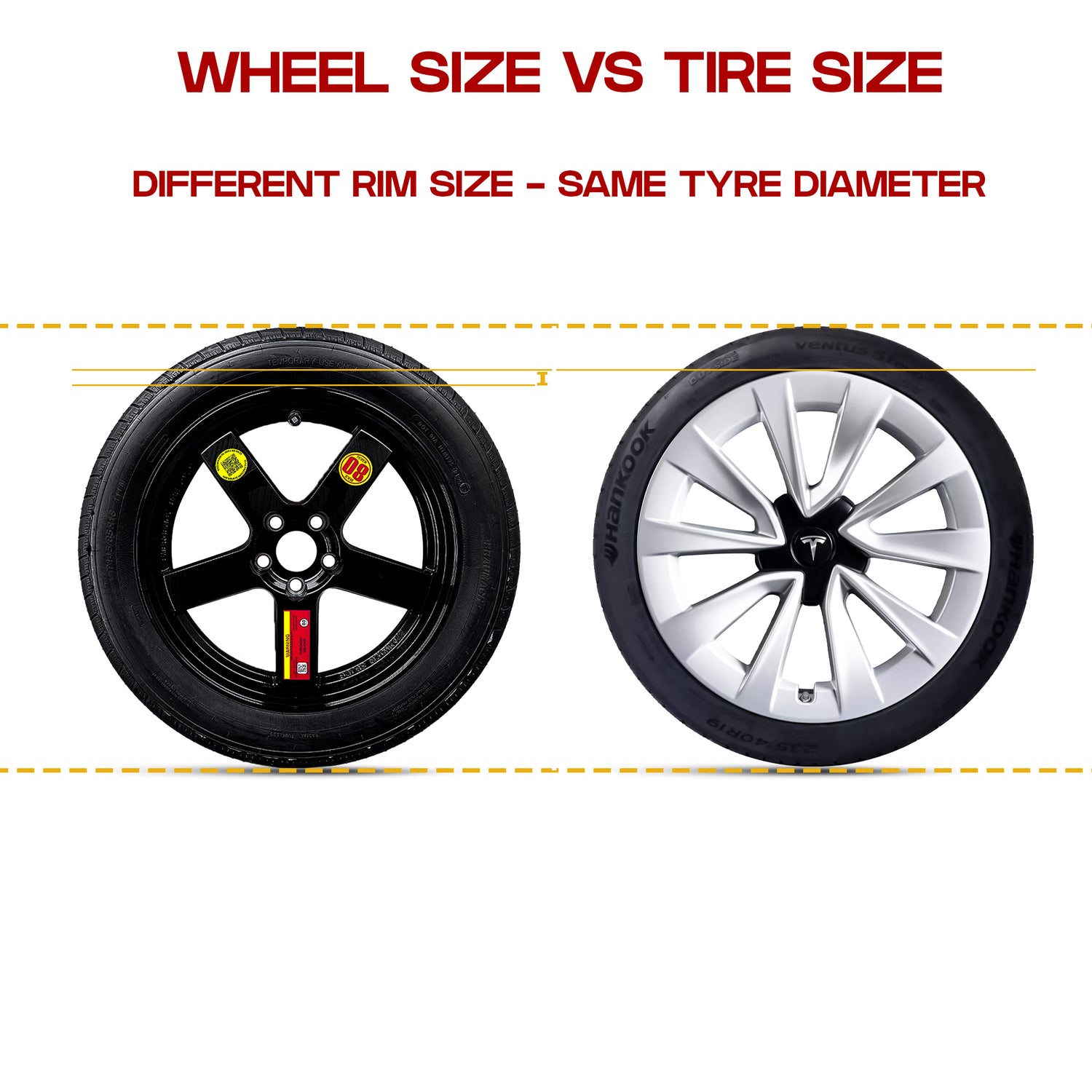 Outer Diameter is Key: Modern cars often come with factory rim sizes ranging from 17" to 22", but the total wheel diameter (rim + tyre outer diameter) remains a close match. Larger rims pair with slimmer tyres, and smaller rims use thicker tyres, so the overall driving ride height is, give or take a few mm, the same..