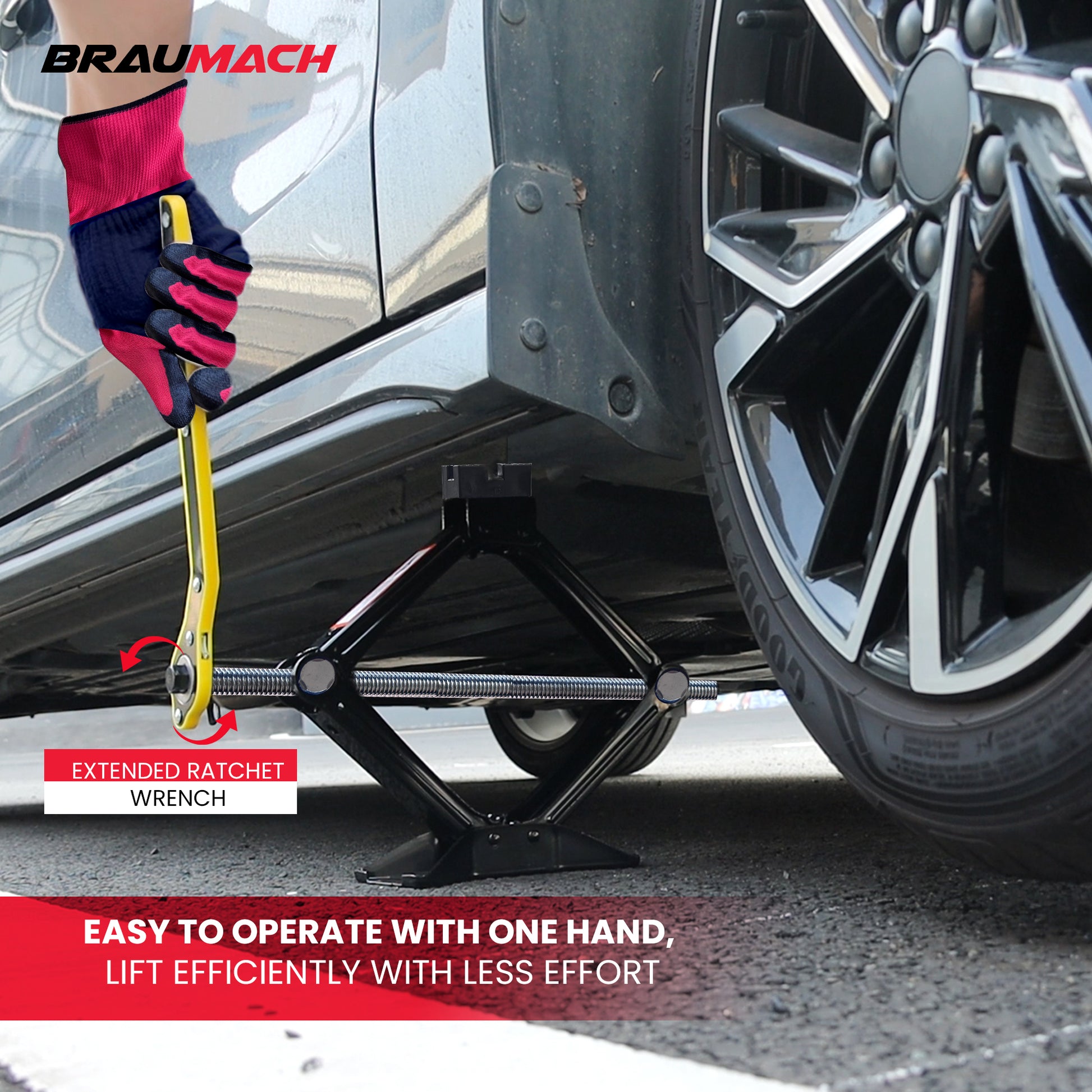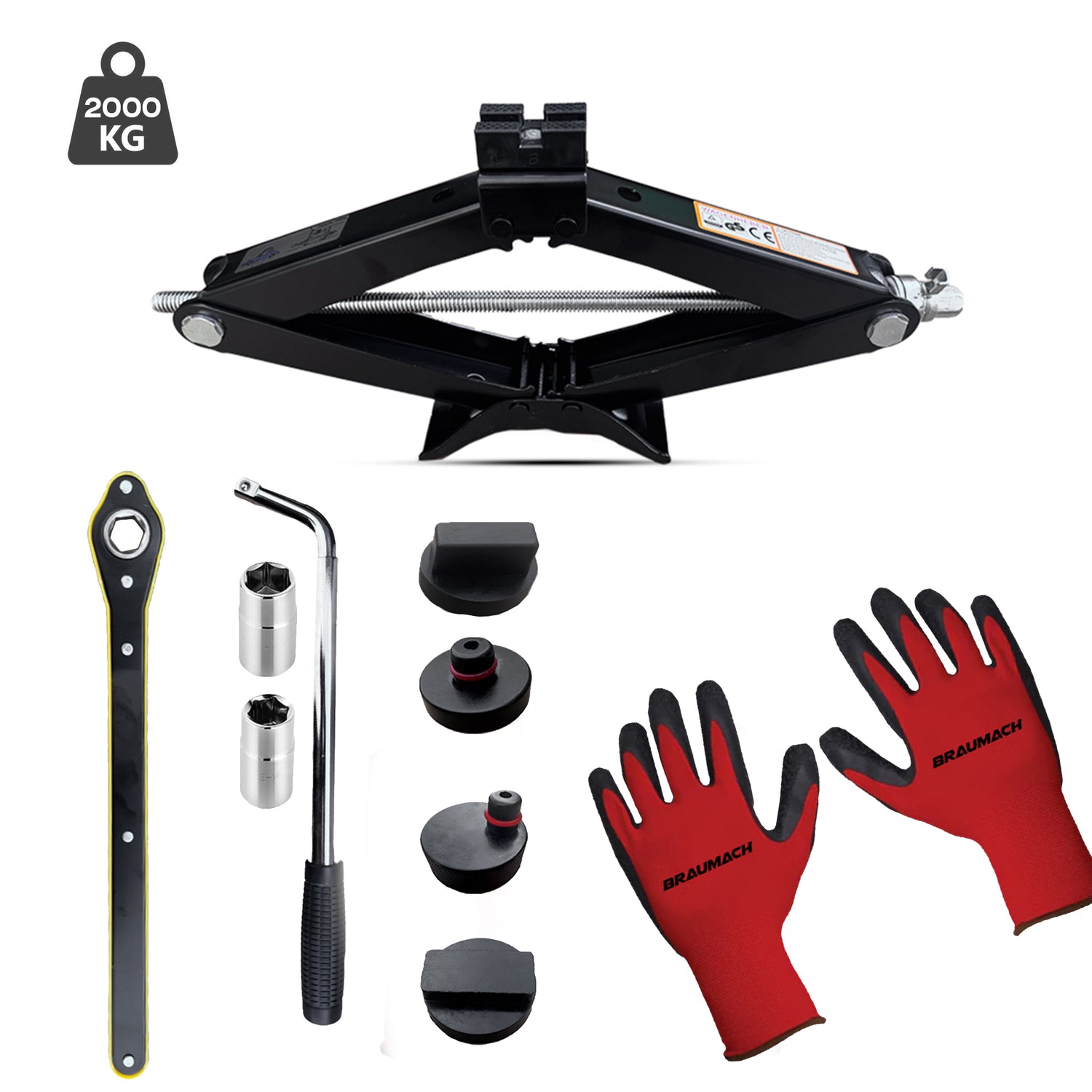 The Braumach Spare Jack Kit is perfect for all vehicles, from medium to large cars to rugged 4x4s, with its powerful 2-tonne jack that lifts effortlessly for tyre swaps or repairs. It includes a tough wheel brace and ratchet for fast, secure wheel changes on the go. You’ll also get signature Braumach gloves for a comfy, firm grip while working. A model-specific jacking puck is included if needed, ensuring safe lifting without damaging your vehicle’s frame. Simple, reliable, and built for any vehicle, this kit keeps you prepared for anything the road throws your way.